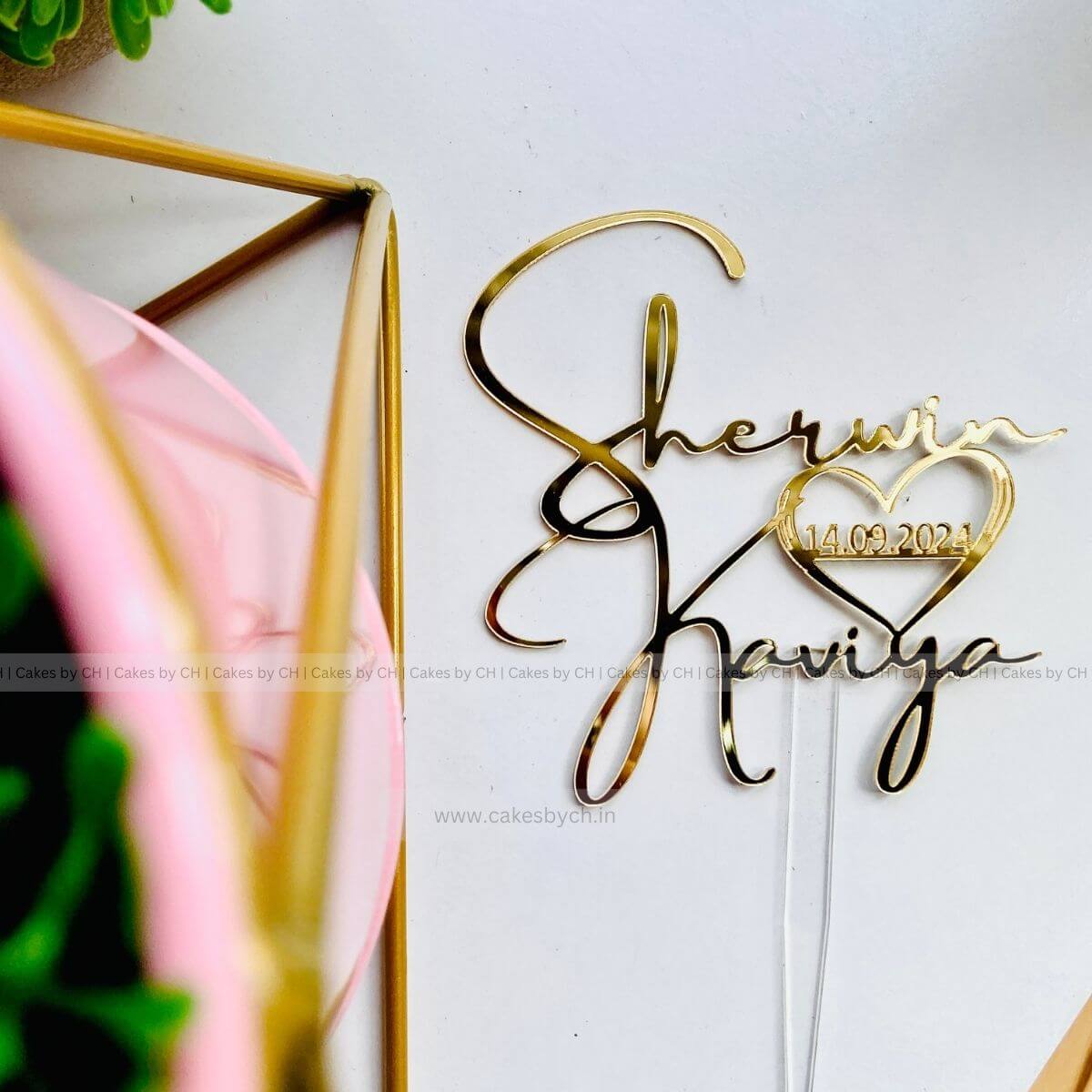 • -42%Sathiya Cake Topper for Togetherness| Wedding | Engagement Anniversary with Personalized Name  | Acrylic Golden Topper