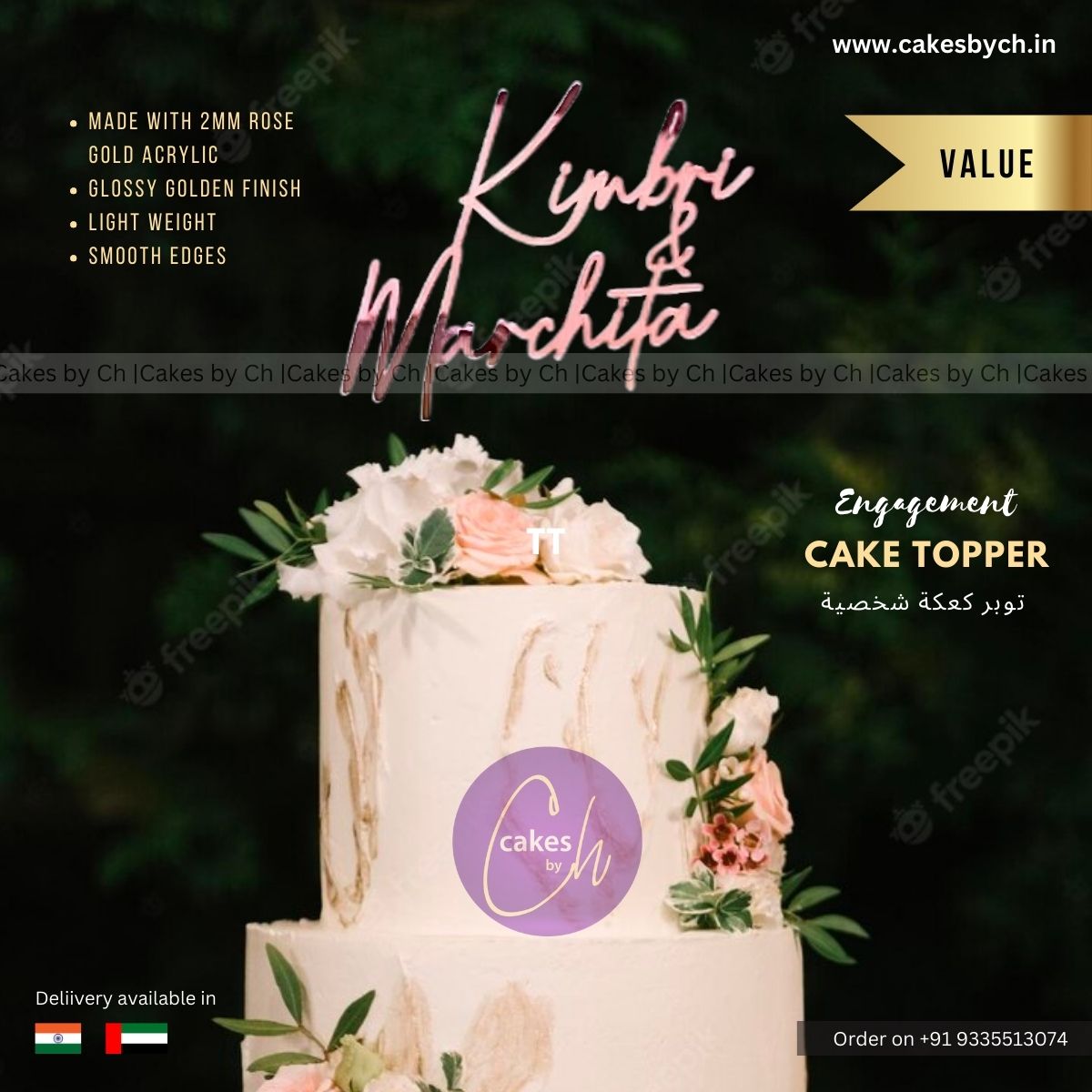 Ring Ceremony Cake Topper | Golden Name topper for Ring Ceremony Cake | Ring ceremony decoration items | Customized toppers for Engagement